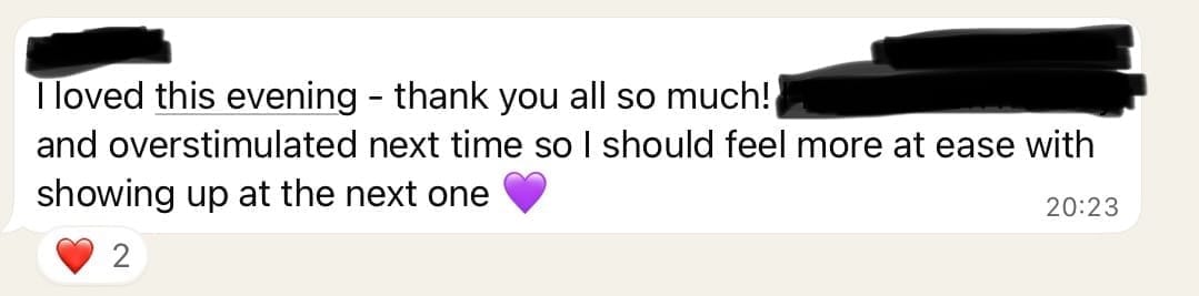 For sharing honestly, being witnessed, and remembering you don’t have to carry everything alone.